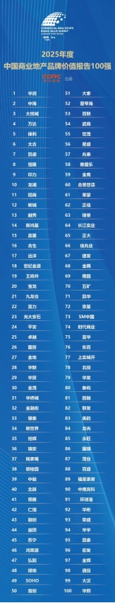 以下为2025年度中国商业地产品牌价值100强研究成果: