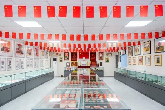 展厅内,4000余件毛泽东像章、红色主题雕塑及红色文化珍品整齐陈列,其中一枚直径仅0.22厘米的袖珍象牙微雕像章,尽显红色文化传承的细腻与深刻。