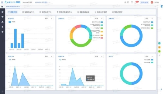 支持跨国企业在全球范围内的贸易往来,可设置贸易路径并自动生成相关购销业务单据。涵盖转口贸易、基于贸易条款物权交割、进料加工许可管理,提升保税监管透明度。同时还对接第三方数据源,实时海运物流跟踪。并围绕订单运输需求,实现从报价、下单到结算的全流程管理。