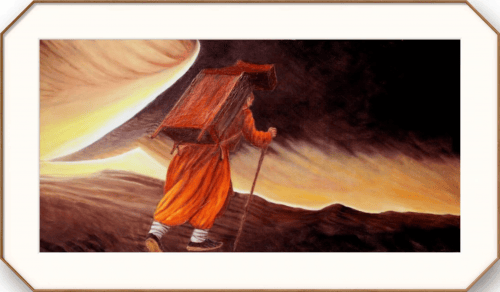 乞经僧 60cm×120cm 2010 年 6 月 莫愁白日天地昏,艰路求经不孤身