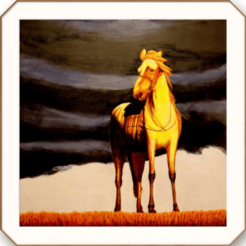 志在千里90cm×90cm 2021年12月 惊鸿脱兔难韧续,道远方知千里驹