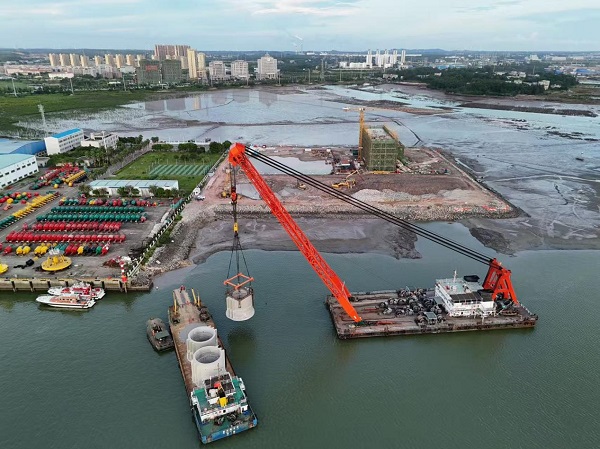 近日,由中交一航局五公司承建的钦州港港口管理基地项目施工№1标段首座圆筒安装完成。